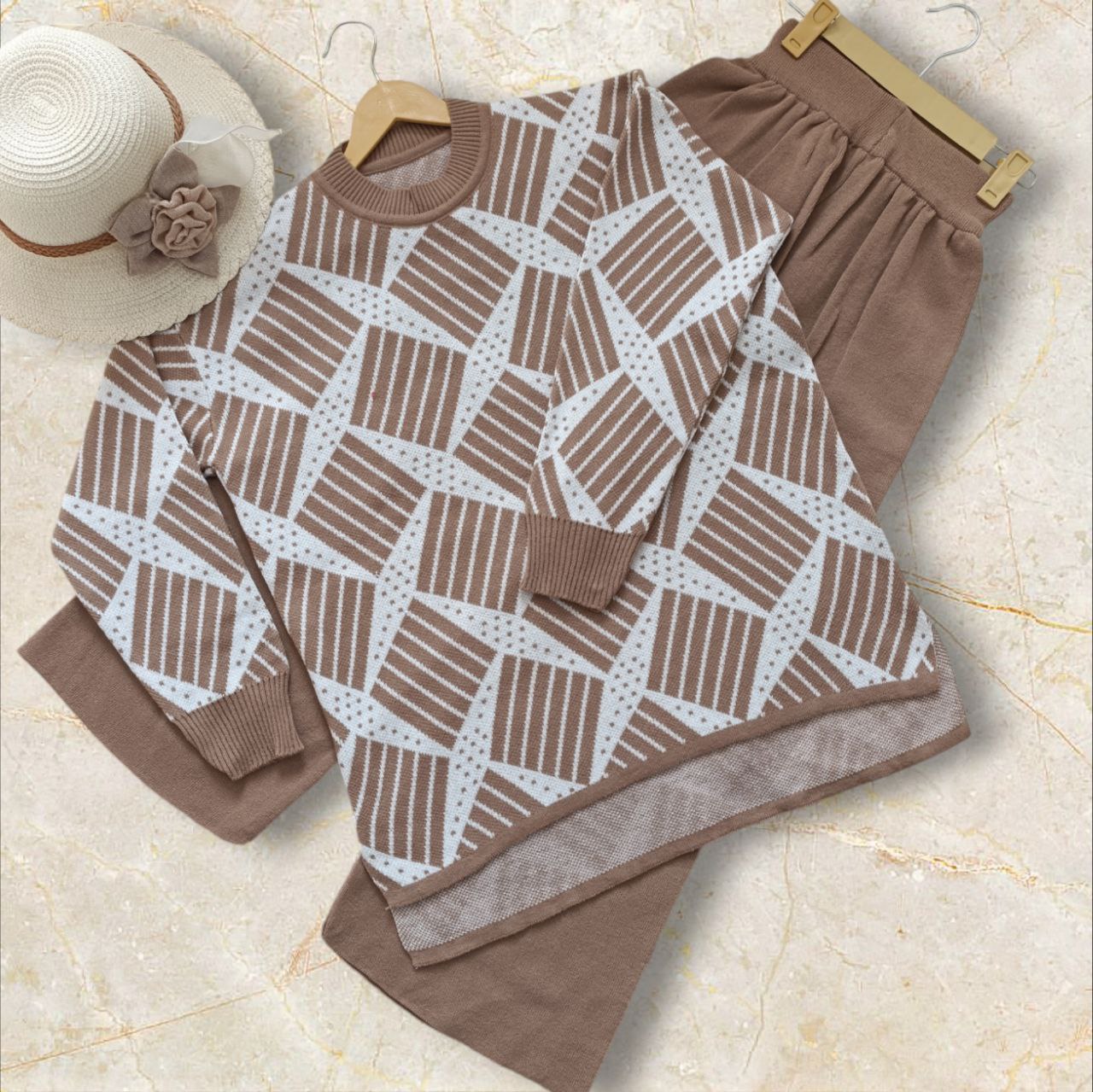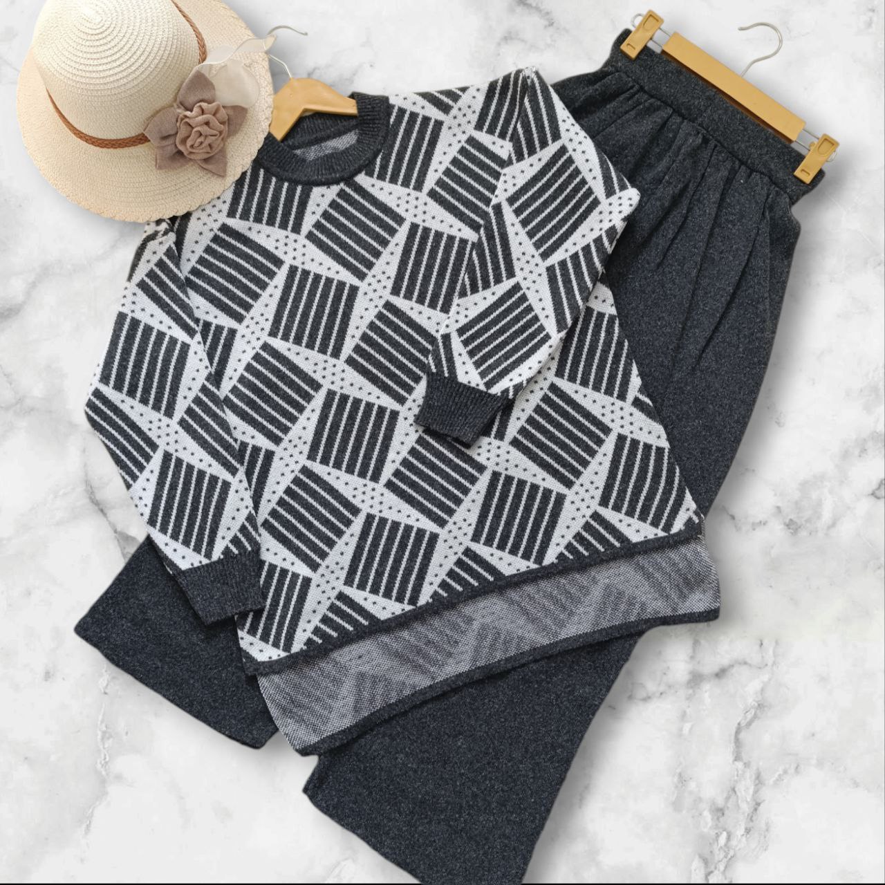 جزئیات: دور سینه 100.قد بلوز 64 قد آستین از یقه 36 فاق شلوار 34 دور ران 50
